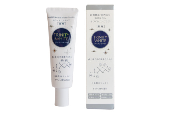 ホワイトニング効果があるポリリン酸Naやヒドロキシアパタイト(トリニティーゼット)のもつ汚れの吸着除去・エナメル質の復元により、歯本来の白さに導いてくれる穏やかな爽快感のある研磨剤・発泡剤・防腐剤・殺菌剤フリーの自然派志向の歯磨きジェルです。