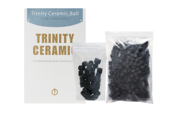 トリニティの働きに加えて、通気性・通水性に優れ、水・油・燃料・空気(流体)などの活性作用を促す触媒として様々な用途に応用できます。飲料水の活性化、浴槽・水槽水の活性化、灯油などの燃料の活性化等、アイデア次第で様々な用途にお使いいただけます。